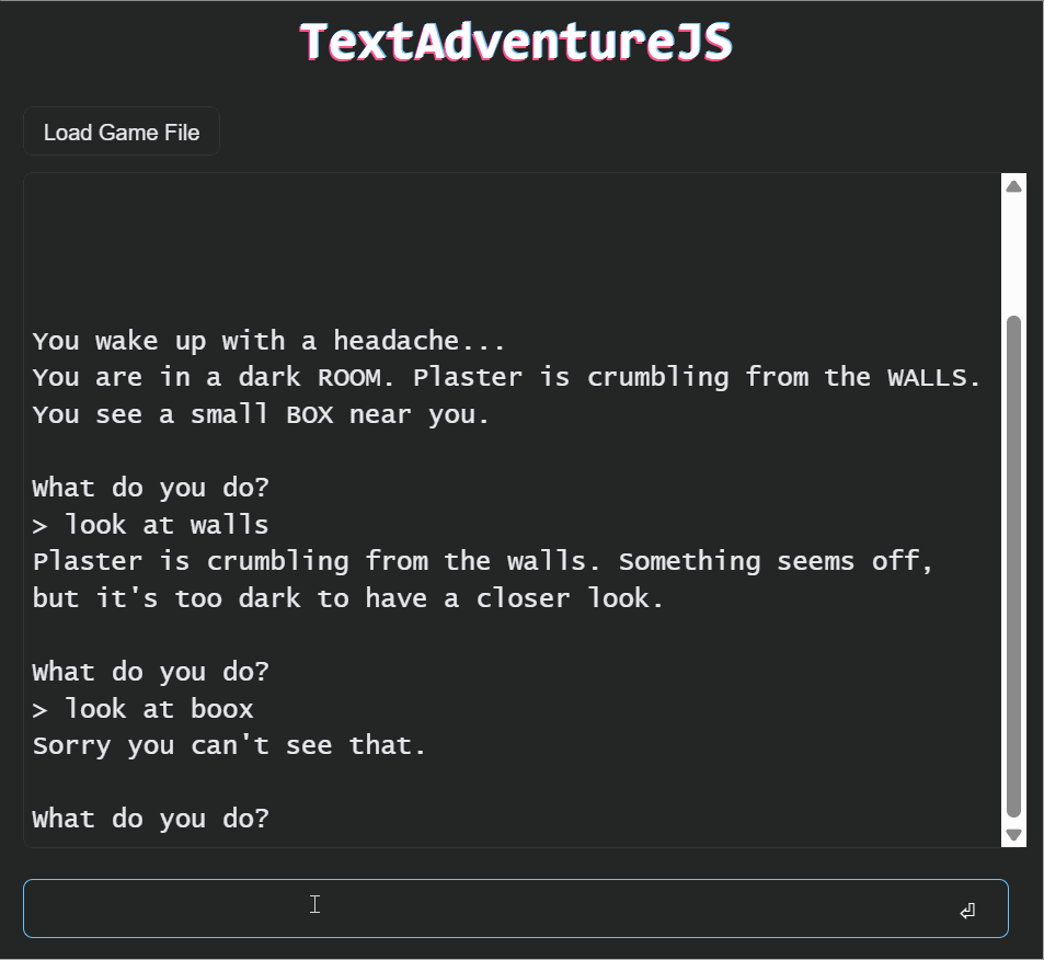 Try it here: https://dak0r.github.io/TextAdventureJS/player/